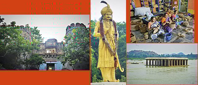 A statue of the best known King of the Vijayanagar Empire, Krishnadevaraya stares at you from a lofty pedestal near the entrance to the village. The village itself is set in the midst of lush green paddy fields bounded by rocky hills creating landscapes that are a visual delight. Anegundi has been stirred from slumber by an NGO called Kishkinda Trust that is working on the development of sustainable tourism and protection of its heritage. The trust works with the women of Anegundi who make baskets, hats, and other items from banana fibre, and these make their way to Indian and overseas customers.