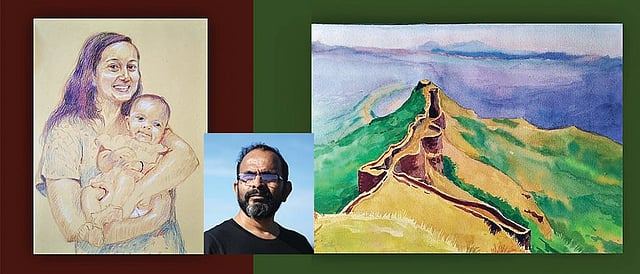 So far, the filmmaker has been making a “copy” of the photographs on canvas — the landscapes he captured through the lens. “I travel constantly, and I have many photographs. I have been painting the landscapes based on these images. Recently, I did a watercolour portrait of girls from the shepherd community. Although the mediums change, my vision or my eye for landscapes hasn’t. The eyes of one of the shepherd girls were very expressive, but in the painting, I might end up depicting the sorrow that I can read in those eyes. However, at the moment, I am still searching for my style, honing my craft that will allow me to paint the grief and sorrow. What I am doing right now is making a copy,” explains Naik.