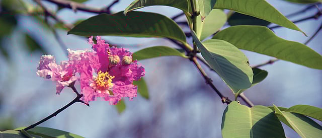Just as he explained this, he pointed to an example of an indigenous tree taking over a foreign species: a peepal tree (ficus religiosa) was growing prodigiously on a jacaranda tree. “The peepal understands that we don’t need a jacaranda tree, but we don’t,” he joked.