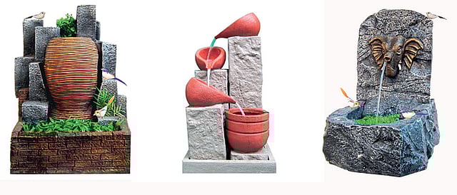 Earlier, the waterfalls used to be prepared in cement and decorated with natural stones. But due to the heavy nature of cement and the cost involved in creating and designing it, most waterfalls that are now readily available in the market, are made from fibre glass. The material is cheaper, flexible and can be easily moulded into various shapes.