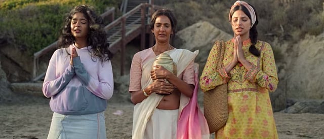 She meets her mother and Kamala after a long, Bollywood-ish sprint and they hug knowing that their bitterness is now behind them. They gracefully let Mohan's ashes into the sea, with U2's 'It's a Beautiful Day' playing on their speaker, and they hold hands knowing that they have all gotten a closure.