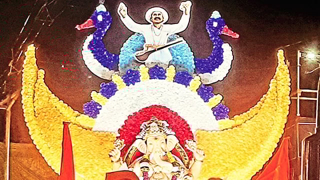 However, the vibrant decorations and symbolic depictions, such as the replica of Lalbaugcha Raja by Jay Maharashtra Gajanan Mitra Mandal and Sant Tukaram by Tufan Mandal, drew widespread attention.