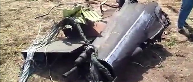 The plane's debris was strewn far and wide on the outskirts of the village, locals said.