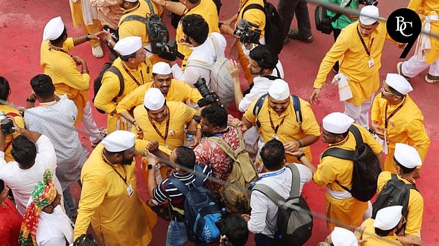 Meanwhile, senior photojournalists from established media houses also reported being shoved and manhandled by the same Pathak while trying to take pictures of the procession. Witnesses said some Pathak members behaved arrogantly with both journalists and the crowd.