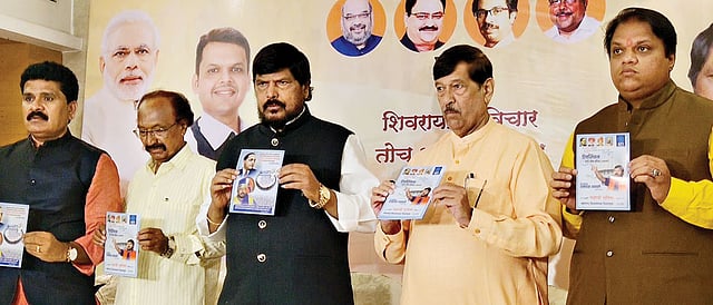 Pune: While speaking with the press during the release of Republican Party of India’s (RPI) manifesto for the State Assembly elections in the city on Wednesday, Ramdas Athawale said, “Fadnavis-Thackeray-Athawale alliance will win Maharashtra Assembly elections and no one can stop us from getting 230-240 seats.”