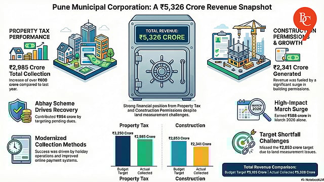 Pune, 1st April 2026: The Pune Municipal Corporation has collected a total revenue of ₹5,326 crore through its key departments, property tax and construction, strengthening its financial position for the current fiscal year.