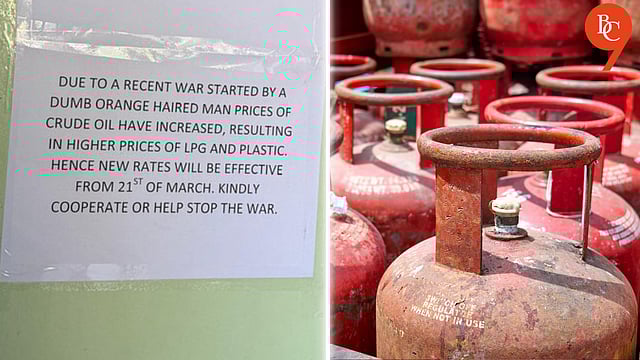 The notice, which has now gone viral, delivers a satirical jab at former US President Donald Trump, connecting global tensions to the rising cost of everyday essentials. It states: “Due to a recent war started by a dumb orange-haired man, prices of crude oil have increased, resulting in higher prices of LPG and plastic. Hence, new rates will be effective from 21st March. Kindly cooperate or help stop the war.”