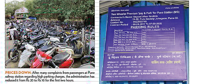 Pune: After receiving many complaints from passengers at the Pune railway station regarding the high parking charge for two-wheelers, the railway administration has reduced it from Rs 20 to Rs 10 for the first two hours.