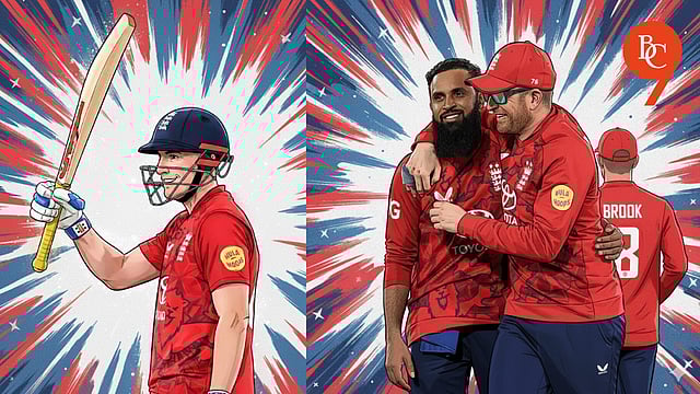 Brook made the hosts pay for the error, blasting six fours and five sixes, including one pull shot that traveled over 100 meters and out of the ground. Salt played a strong supporting role, rotating the strike and punishing loose bowling, while Tom Banton added a quick 29 runs from just 12 balls to finish the innings.