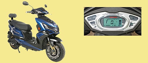Riding on 90/90 12 tyres, the escooter features LED headlamp with DRLs, LED turn indicators, digital speedometer, central locking with anti-theft alarm, and keyless entry. Powered by a 1000-watt brushless DC motor with a maximum power output of 2500-watt, the Praise could be had with either a 72V/45Ah VRLA battery with six to eight hours of charging time or a 72V/45Ah Lithium-ion battery with just an hour of charging time. If the latter is yet to be launched, the escooter has its master switch under the seat. To access it, the key has to be turned right and then left. Upon mounting the Praise, it is apparent at once that the seat is wide enough to seat two comfortably. The switchgear has the horn and turn-indicator switch placed within easy reach on the left. The horn button is unusually placed above the indicator switch. The right headlamp controls are where they should be. Where the start button should ideally be, there’s another horn button. Sans a start switch, all that the escooter requires is the turning of the key.
