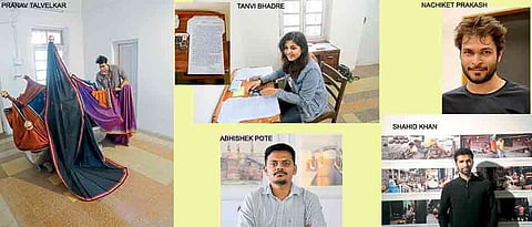 Abhishek Pote has put up a set of four paintings; each projecting the way architecture in Pune has changed over the period. One of his paintings projects the drift from Pataleshwar caves on J M Road to the Pune Metro. He also talks about the ‘wada’ culture which is now on decline. In one of his paintings, he has added an urbanised touch to the wadas. “I used to live in a wada. My dad got it demolished and got a building constructed on the same plot. Now that he’s no more, this piece of art is a tribute from a son to a father,” says Pote, pointing out to the sentimental piece of art.