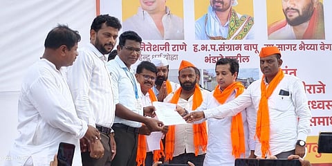 A 'Hindu Jan Aakrosh Morcha' was organized in Indapur on Sunday (18th) to protest against the encroachment on the Shrimant Malojiraje fort. The march began from Ramves Naka and proceeded through the main market to the Khadakpura Ganapati Temple, where participants offered prayers.