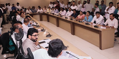 Union Minister of State Murlidhar Mohol organized a meeting on Monday at the municipal corporation to discuss various development projects. The meeting was attended by Additional Commissioner Prithviraj B.P., City Engineer Prashant Waghmare, and heads of various departments. BJP city president Dheeraj Ghate, Ganesh Bidkar, Hemant Rasane, Shrinath Bhimale, and several former councilors were also present.