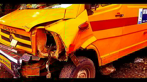 Pune: A serious accident was narrowly avoided when a concrete dumper almost crashed into a school bus carrying 10 to 15 children on Wagholi-Lohgaon Road early in the morning on Wednesday (September 25).