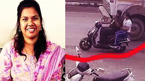 The woman, identified as Sirichandana Vishwanath Hewattam, a resident of Nyati Elan, was killed instantly after falling under the rear wheels of the dumper. Her husband, Vishwanath, sustained injuries in the collision but survived.