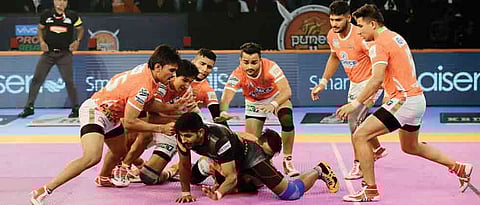 In a nail biting contest, the Pune team held their nerves to secure a 33-32 win over neighbours.